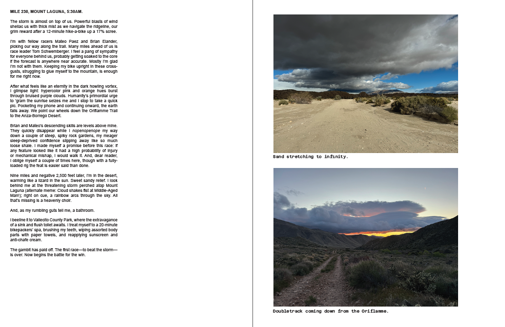 If there’s one thing I love (ya know, next to my family — Bridget and Felix, if you’re reading this, hugs and kisses) it’s getting out there and getting weird. One of my favorite ways to do that? Bikepacking races. Here’s one part of a piece I wrote up for Calling in Sick Magazine about the famous (in some small circles) Stagecoach 400.